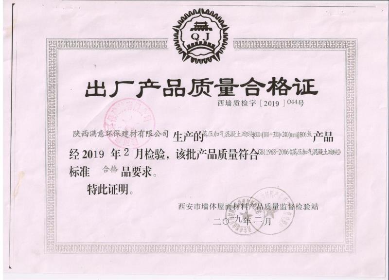 經(jīng)檢驗,我司生產(chǎn)的該批蒸壓混凝土砌塊產(chǎn)品,符合出產(chǎn)標(biāo)準(zhǔn)!